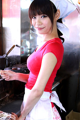 Asian cook Akubi Yumemi gets her muff toyed while working at the grill | japan hdv |